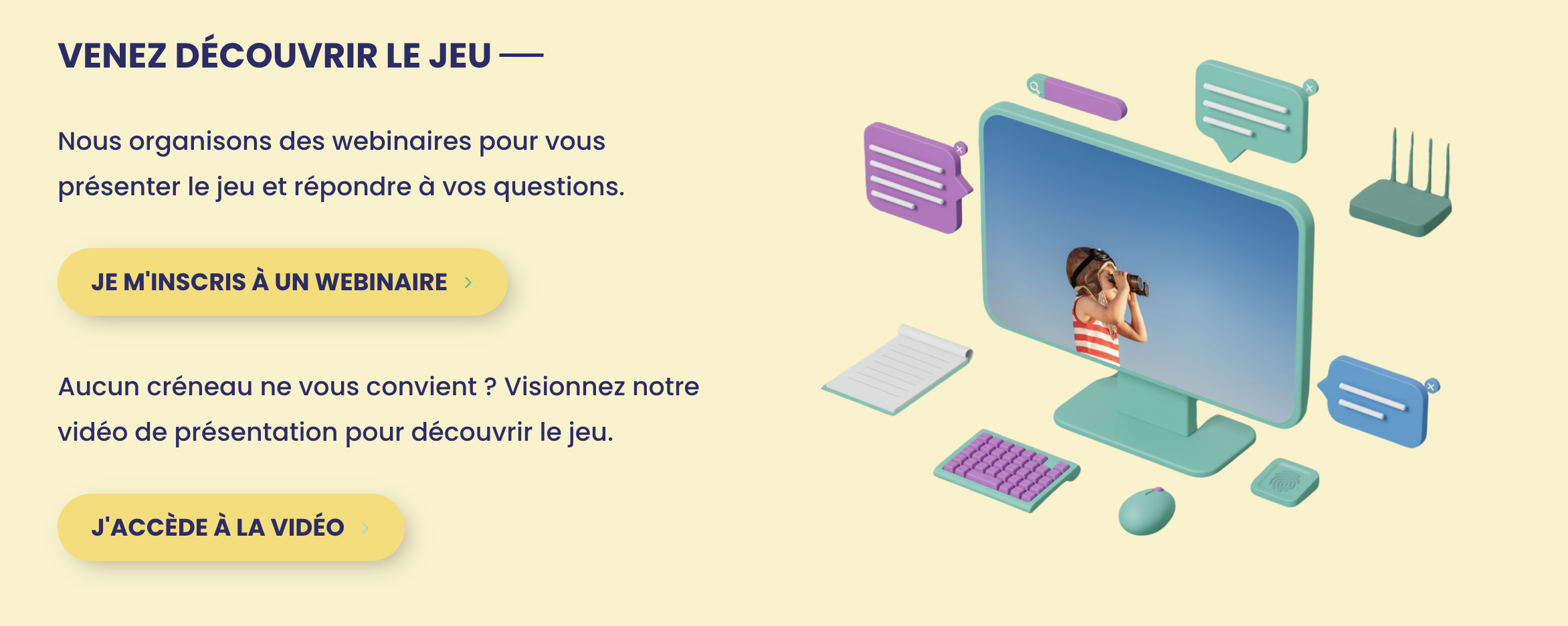 Des webinaires de présentation et des vidéos explicatives sont régulièrement organisés pour accompagner les classes, expliquer le fonctionnement du jeu et partager des exemples de défis.