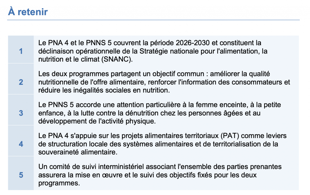 Avec le PNA 4 et le PNNS 5, la France se dote d’un cadre programmatique cohérent pour la période 2026-2030, ancré dans une vision One Health qui reconnaît l’interdépendance entre les santés humaine, animale et environnementale. Si l’ambition affichée est à la hauteur des défis — maladies chroniques, inégalités de santé, souveraineté alimentaire, transition écologique —, la réussite de ces programmes dépendra de leur traduction concrète dans les politiques territoriales, des moyens alloués à leur mise en œuvre et de la capacité des acteurs locaux à s’en emparer. Les projets alimentaires territoriaux et la stratégie nationale sport-santé offrent des relais opérationnels prometteurs. Reste à construire les conditions d’une appropriation effective, à tous les niveaux, d’une politique alimentaire qui engage, au fond, le rapport collectif à la santé et à l’environnement.