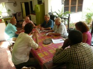 Au domaine de Fonds Moulin à Morne Vert, quelques personnes se sont rassemblées afin d’accroître leurs connaissances sur la médecine par les plantes. La rencontre était présidée par M. Emmanuel Nossin, pharmacien/ethnopharmacologue et coordonnateur général du réseau TRAMIL. Après une discussion sur la place de la médecine d‘hier et d’aujourd’hui, la rencontre s’est poursuivie sur un atelier d’alcoolature.